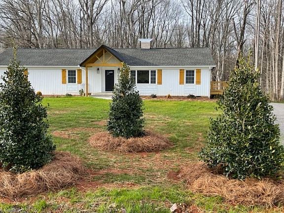 Discover your dream home in the heart of Davie County! This move-in-ready, one-level residence combines luxury and comfort, featuring 4 bedrooms, 2 full bathrooms, and an open floor plan. Enjoy a chef's kitchen with new appliances and a central island, high-end vinyl plank flooring in the living area, new tile floors, and cozy carpeted bedrooms. The bathrooms exude top-notch elegance, featuring a spacious, luxurious shower and a welcoming tub! Upgrades include a new septic system, fresh paint, HVAC, toilets, hot water heater, plumbing, fixtures, tile shower, bath vanities, soaking tub, light fixtures, doors, deck, vinyl siding, gutters, crawlspace, shutters, LED lighting & Wi-Fi porch lights & much more! The nearly one-acre property boasts professional landscaping with redbuds, red dogwood, cherry trees, red maples & a serene natural rock waterbed! Plus, a new heat pump comes with a 10-year warranty. This home, merging modern luxury with natural beauty, awaits you! See it today!