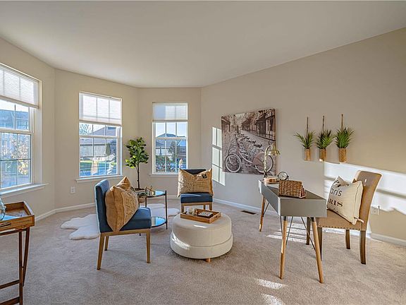 No need to wait for new construction,this property is available immediately. Located on a premier lot in the active community of The Fields of Indian Creek this home is move-in ready. Full of natural sunlight you are welcomed buy a lovely hardwood foyer flanked by living room with a bay of 3 large windows. The open floor plan is hardwood and presents space for large living area, dining area and eat-in kitchen area. The entire back of the house is windows with sliding door to deck expanding the width of the house overlooking wooded area and green space. The center island kitchen is granite and boasts stainless appliances. The spacious Primary bedroom offers walk-in closet, large bath with double vanity, tile shower and water closet. An office with built-in bookshelves, a second bedroom, and laundry room with wash sink complete with 1st floor. The 2nd floor offers loft area and a guest suite with walk-in closet and full bath. The basement is the full footprint of the house and is complete with drywall and electrical. The 2 car garage has been expanded to house 2 SUV cars. All of this in a maintenance free living community with clubhouse, pool, pickleball, tennis courts and a Bocci court. Time to have fun with worry free lifestyle! HOA covers all lawn maintenance, snow removal, trash and clubhouse. This is a 55+ Community.
