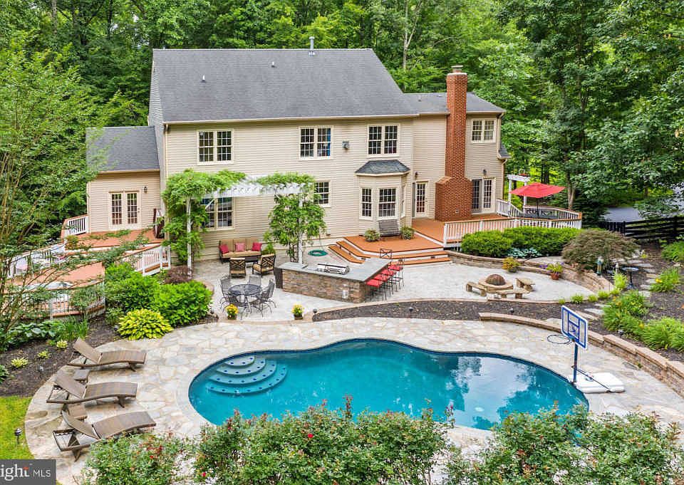 Spectacular estate on over three acres with the serenity and privacy of rural living, and just minutes to all your daily needs! Live and entertain with your own oasis featuring swimming pool, outdoor kitchen, fire-pit, multiple tiered decks and patios, hot tub, water fall fountain, and open yard all nestled within dense trees. The luxury home has five bedrooms, three-and-one-half bathrooms, and over 5,600 finished sq.ft. on three levels. Features include gourmet kitchen, formal and casual dining rooms, spacious family room, private study, club room, conservatory, two fireplaces, spacious bedrooms, new carpet and paint, and a fully finished basement. Incredible location just minutes to major commuter routes, shopping, and dining coupled with sought-after Loudoun County Schools. Don't miss the opportunity to own this amazing retreat!