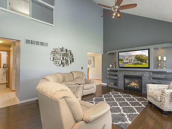 Super sharp two story in pristine move-in ready condition. The living room has that wow factor with a vaulted ceiling, hardwood floors, gas fireplace with custom entertainment center & wired for surround sound. The kitchen is light & bright and has tile flooring, pantry closet, appliances are included as is. Spacious dining area has sight lines to the kitchen and living room. Sliders lead to a huge cement patio. Also on the main floor is convenient half bath and laundry room. The stairs to the upper level are outfitted with a contemporary railing and upgraded carpeting. Stunning master bedroom with two closets and access to the full bathroom that has updated tile floors and fixtures. There are two addition bedrooms up each with double closets. The full basement has an egress window for future use. Attached garage is finished and heated. This home sits on one of the largest lots in the subdivision with no neighbors on one side or behind. Conveniently located, minutes to Bypass20/I90.