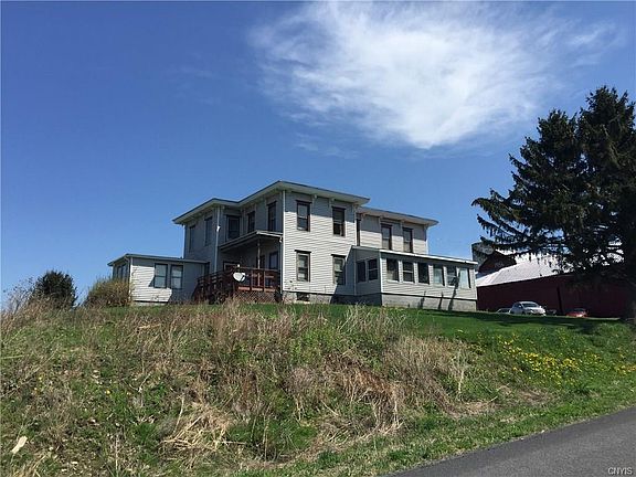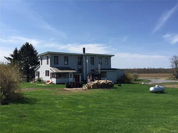 This farmhouse has lots of room to roam. Large working kitchen with farm style eat-in area plus a formal DR and LR. Full bath and laundry on the 1st floor. Also an addition space for a master bedroom or in-law suite which has a deck off of it. Second floor has 5 bedrooms, one is a walk thru, plus a full bath and large open landing. Enclosed porches on both front and back. Parcel includes all the barns and outbuildings on 4.30 acres. Outside wood furnace with oil backup and hot water on demand. All the roofs have been updated including rolled, metal and architectural shingles. Great opportunity for possible horses, chickens and other livestock.