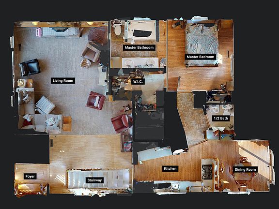 - 1st Floor: Dining Room, Kitchen, Living Room, Master Bedroom