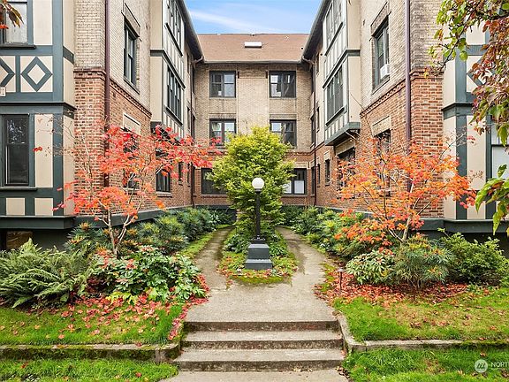 Discover the charm! Constructed in 1911 The Gables Co-op Tudor style condo is a blend of early 20th century charm. Nestled in the heart of Capitol Hill this 1 bed,1 bath is perfect for those seeking a comfortable retreat. Enjoy the serene ambiance that maximizes every inch of this delightful condo. Wall of windows flood interior spaces with natural light, hardwood floors, and box beam ceilings. Tasteful updates throughout. Lots of closet, storage space, separate in-home laundry room! Just a few min to all your favorite café’s, shops & restaurants. Bus routes and light rail station only blocks away. HOA covers property taxes, insurance, water, sewer, garbage, compost serv, pest control, recycling, heat, building/yard maintenance & internet.