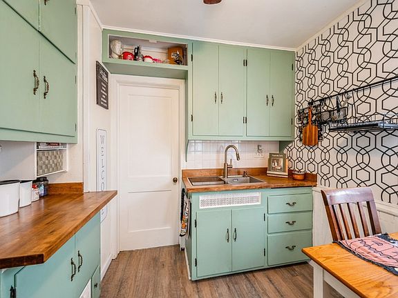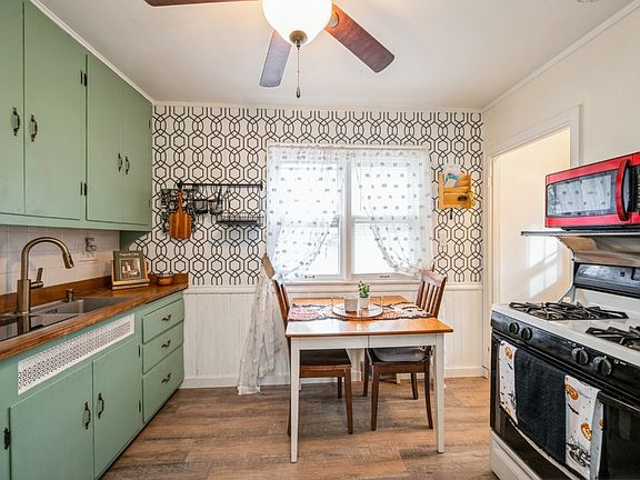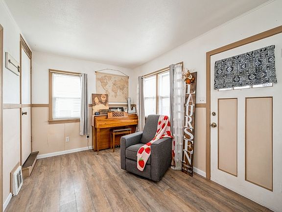 Charming and affordable, 1.5 story home has so much to offer, ideal for a First Time Home Buyer. Recent updates: new steel roof on the house and garage which has attached screen-in porch, complete remodeled bathroom with tiled shower and tiled floors, wide luxury vinyl planks on main floor, new counter-tops, backsplash, newer refrigerator, stainless steel sink, faucet, dishwasher, and some new windows. This adorable home could be converted into 2 or 3-bedroom home. The original bedroom on the main floor is currently being used as a living room. The second-floor den/sitting area could be used as a third bedroom. The main bedroom has two walk-in closets, one is being used as a nursery. The basement offers a rec area with room to expand, and a laundry area. The nice flat back yard is fenced in great for kids and pets. The large, one stall garage has an attached screen-in porch potential for a 3-season-room or a storage shed. Buyer to verify Sq Ft.