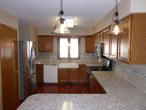 Spacious 3 bedroom, 2 bath townhome! Double attached insulated garage! Relax on your front patio! Open floor plan! Main floor living! Two bedrooms, bath and laundry on the main floor!! Large kitchen that has plenty of cabinets and Cambria counter tops!! All appliances stay with the home, stainless steel kitchen appliances and the laundry set! The kitchen and dining room have beautiful cherry wood floors! Great wide open dining room! Huge living room with a large window and door leading to the deck! Windows have remote control blinds! The deck 8x16 and maintenance-free! A relaxing place to enjoy nature with lots of trees!! The master bedroom is large has double closets! Bedroom 2 has a wonderful walk-in closet! Dedicated laundry room! Main floor full bath! Down stairs you will find a massive family/recreation room with a fire place! Bedroom 3 is big with a big walk-in closet! The basement has a ¾ bath! You will also find a utility room and a work shop! Walk-out Basement! This is a large home whether you utilize just the main floor or both floors!! Leave the snow shoveling and mowing up to someone else!