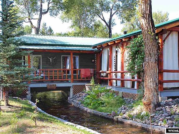 .Celebrate nature while relaxing on the wrap around covered deck with the Grand Encampment Canal running under the main house and throughout the property. Built in 2001, the property contains 3,760 sq ft of main home living space with 3 well provisioned cabins. The home was built with top of the line materials and includes vaulted ceilings, 3 bedrooms with baths, ½ bath in laundry, open kitchen/family room and large dining room. A picturesque quiet surrounding sets the stage for this custom log home.