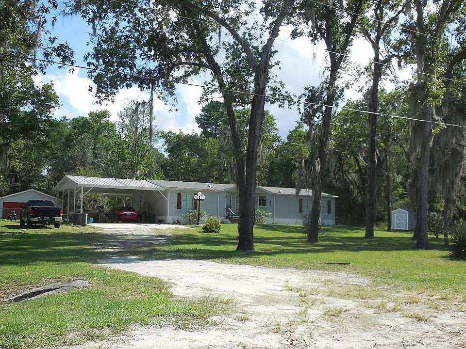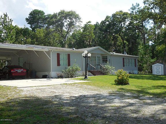 Very well-maintained DWMH 3 BR/2BA with upgraded kitchen, recently replaced air conditioning, carpet, kitchen appliances. Roof replaced in 2001. 20 X 15 jalousie window porch, washer/dryer included. Sprinkler system throughout & backyard chain-link fenced yard. Double carport with concrete pad, water & electric. Large RV carport with. Great buy in country location close to Palatka.