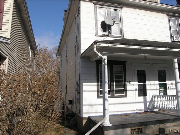 Stockertown 2 family residential property. Each side of the property has 5 rooms, 2 bedrooms, 1 bath, attic and basement with outside entrance. Furnaces are 3 years old. Propane hot water heater and liquid propane furnace, 100 amp circuit breaker. Semi modern kitchen. 411 just remodeled with new walls in dining room, painted throughout, new carpet and vinyl flooring in kitchen and bath. All new electric switches and outlets. Bath has new vanity and toilet.