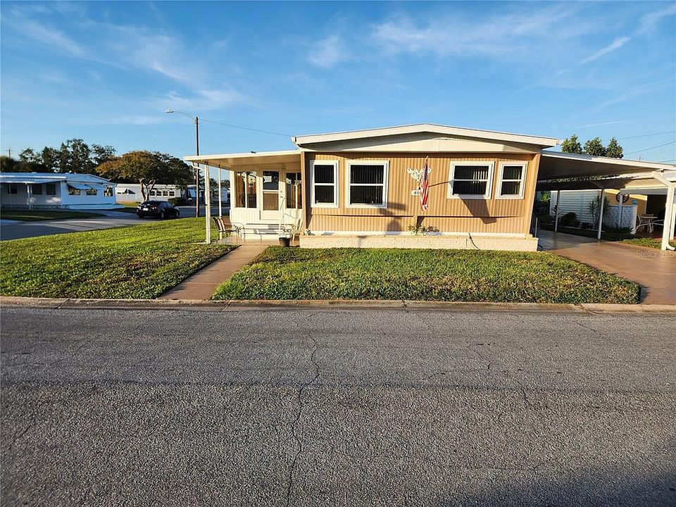 NEW PRICE: $175,000. Heather Hills active 55+ community. NO LOT Rent here. Don't miss this unique home located in a 55+, PET friendly community. It is a Kropf model wit the interesting wagon wheel ceiling in living room and slanted walls; doesn't feel like a mobile home. Open and Spacious. This is a two bedroom, two bath home. Guest bathroom has a new walk in shower. Master bedroom has a walk in closet. Updated windows, All Weather Roof on unit in 2016 and same on carport in 2018. You have updated vinyl flooring in the kitchen and dining room. The lanai/Florida room has glass windows and a wall A/C. Home is located on a large corner lot. Extra large utility shed with the washer and dryer. Property being sold Turnkey furnished. Seller is providing a One Year Home Warranty to the Buyer. Located in an active community with low maintenance fee of $649/year includes: Club House, and Shuffleboard. HOA of $40.00 per year is Optional. Only minutes to the beautiful beaches of Anna Maria Island, walk to shopping, restaurants, and the airport.