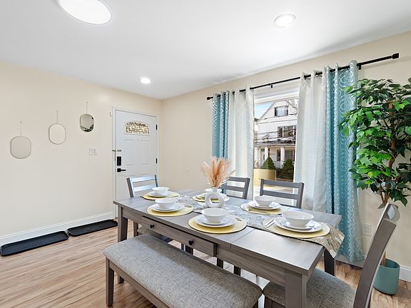 Welcome to 409 66th Street a beautifully updated 5-bedroom, 3-bath apartment offering the perfect blend of modern finishes, comfort, and unbeatable convenience in one of Hudson County's most desirable neighborhoods. Step inside this fully furnished rental and be greeted by wide-plank wood-style flooring, soft recessed lighting, and a flowing open-concept layout that connects your dining, living, and kitchen spaces. The kitchen is a true standout: fully equipped with stainless steel appliances, granite countertops, a stylish tile backsplash, and a coffee bar complete with espresso machine ready for your daily routine or guest entertaining. Every room is thoughtfully furnished, from queen-size beds with fresh linens to plush seating areas and custom accent walls that add a pop of personality. This property is spread throughout two different floors, approximately 1200 square feet of living space, allowing for great space space with even its own private backyard for maximum tranquility and relaxation. Enjoy the rare perks of exclusive in-unit laundry, garage and off-street parking, and central heating and cooling all wrapped in a quiet, residential setting. Located just blocks from Bergenline Avenue, you're minutes from Manhattan-bound buses, shops, international cuisine, and parks along the Hudson River. Grab groceries from Trader Joe's and/or Whole Foods, both under 15 minutes away. With easy access to NYC, top-rated schools, and a diverse, family-friendly community, this home is ideal for professionals and families! Open to medium and long term stays! Tenant to be responsible for all utilities. No Smoking. Private Deck for 1st Flr access only.