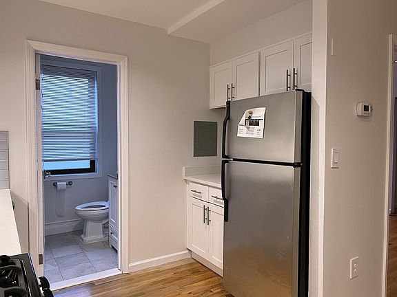 Beautifully updated modern apt with new kitchen, white quartz counters w/breakfast bar, and SS appliances. Updated Bathroom with tub & window. Smart box layout allows good furniture placement. Large sliding glass door to terrace. Hardwood & Tile floors and central HVAC. Common W/D on-premises. Excellent location near parking, parks, and shopping. Close to bus and light rail. No Smokers/vaping or Pets. Approx 600 sq ft.