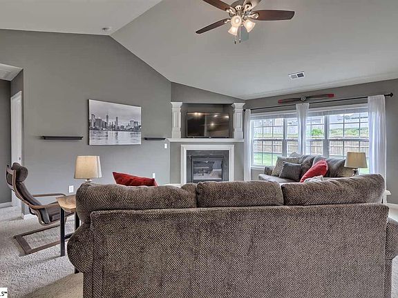 Beautiful like-new home in Caledonia now available! 3 bedrooms, 2 bathrooms + bonus room! This property has been meticulously maintained & cared for! So many wonderful features, w/ great open floor plan! Family room features vaulted ceilings, gas log fireplace & ceiling fan. The kitchen opens to the dining and family room, and includes upgraded gas range, refrigerator, built-in microwave, dishwasher, recessed lighting & pantry. Dining space opens to patio through sliding doors. Beautiful master suite has vaulted ceilings, ceiling fan & spacious walk-in closet. Master bathroom features double sink vanity & garden tub! Split floor plan with the other 2 bedrooms & full bath on the other side of home. Upstairs you will find a spacious bonus room, which could easily be used as den, office or playroom! Outside you will find professional landscaping and the best back yard! Owner added a 6' Charleston-style privacy fence, which provides the perfect finish to make this a great space to entertain and host your guests. Other features include Nest thermostat and security camera, custom 2" faux wood blinds throughout, upgraded kitchen cabinet hardware, added shelving in master closet, and much more! Ideal Powdersville location close to 153, short drive to downtown Greenville, I-85, and all of the shopping & dining you need!