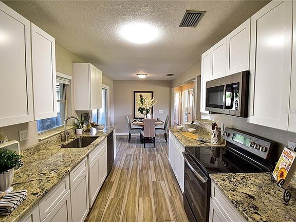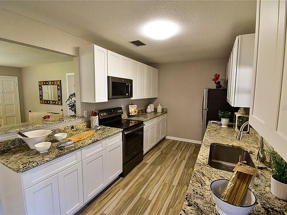 This beautiful fully renovated block home with new roof, plumbing, kitchen, wood look tile flooring, new paint, windows and new bathrooms is located in a very well established neighborhood with NO HOA and comes with a FULL HOUSE WARRANTY. When arriving at the home you're greeted with great curb appeal with a good sized driveway, a brand new 30 year architectural shingle roof and new exterior paint. You have a covered front porch which leads you into your new home with wood look tile flooring, an open concept living, dining and kitchen area with new shaker style soft closing cabinets, high grade granite counter tops and stainless steel appliances with a bar area to sit at making it a great entertaining space for friends and family. The split floor plan gives your huge master bedroom good privacy from the other bedrooms and with the master being over sized it gives the current owners the option to have a separate sitting area in the room. The high end master bathroom has new cabinets, granite counter tops with double vanities as well as a large subway tiled walk in shower. The other 2 bedrooms, one of which is also very large, share the updated hall bathroom. Outside you have a large screened in back porch area where you can enjoy the FL weather in privacy. A few hundred yards down the street is the end of a canal or there is a public boat ramp down the street where you can take a boat out on lake Ned and enjoy the lake lifestyle. Come and take a look.