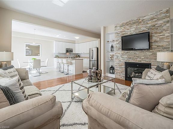 This 3 Bedroom, 4 Bathroom home with 3000sf of finished living space is sure to impress. An inviting foyer leads to the semi open concept main floor with 9ft ceilings and Maple Hardwood. Large kitchen with Breakfast Bar Island, tall upper cabinets, lots of counter space and Stainless Steel Appliances. Seating for 6+ in the Dinette area with access to the private Fenced yard with Patios, Gazebo and a fruitful plum tree. 2nd level has Maple Hardwood in all bedrooms. A King Size Master with a large Walk-In Close and a 4 pc En-Suite with deep soaker tub. Other 2 bedrooms are large and bright, both with double closets. Bonus 2nd floor laundry room. Lower level with rec room, Wet Bar, Office/spare bedroom area and a 3pc Bathroom. Storage as well as a Cold Room. Parking for 4 cars. Located 1 block from Chicopee Ski Hill with year round activities, 3 houses away from a family friendly Beaumont Park. Lots of walking/bike trails along the Grand River just steps away. Close to shopping and services. Easy access to Hwy 401. Explore in 3-D by selecting the play tab. All inquiries welcome. Shows AAA, call today.