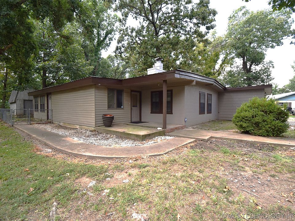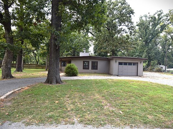 Welcome to your lakeside retreat in the heart of the quaint & quiet Big Bluff addition near Lake Hudson. This charming 2-bedroom, 1.5-bath cabin offers the perfect blend of tranquility and convenience, making it an ideal choice for both weekend getaways and full-time lake living. Constructed with durable concrete blocks and crowned by a reliable metal roof, built to stand the test of time. As you step inside, you'll be greeted by an inviting open floor plan that seamlessly connects the living spaces, enhancing the sense of togetherness. The vaulted great room with its rustic wood-burning fireplace creates a cozy focal point, perfect for warming up on chilly evenings or simply enjoying the crackling ambiance. The kitchen has been recently upgraded, boasting brand new cabinets and modern appliances that blend seamlessly with the cabin's rustic charm, the perfect space for preparing meals for 2 or entertaining a group. Attached to the cabin is a convenient 1-car garage complete with shelves and a workspace, offering both storage and a place for your DIY projects or hobbies. Imagine having the tools you need right at your fingertips. Situated on a generous .42-acre lot, the property is adorned with mature trees that offer shade, privacy, and a connection to nature. The quiet lake neighborhood adds to the serenity, providing a peaceful environment that allows you to unwind and recharge. For those who enjoy boating and water activities, a boat launch is just a short drive away, allowing you to easily explore the beauty of Lake Hudson whenever you desire. Conveniently located near MAIP, Salina, and all the amenities in Pryor, you'll have the best of both worlds - a secluded lakeside haven and easy access to urban conveniences. Whether you're seeking a tranquil weekend escape or a permanent lakeside residence, this cabin offers the lifestyle you've been dreaming of. Embrace the allure of lake living and make this charming cabin near Lake Hudson your own.