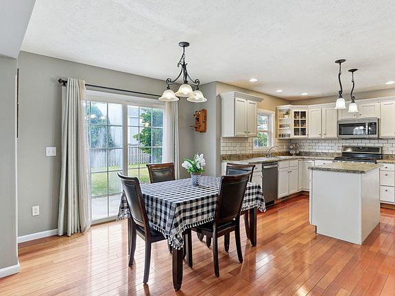 You'll love this Prairie Fields charmer with excellent condition, great curb appeal and numerous updates/upgrades! A spacious entry greets you at the front door with a staircase/railing that draws the eye up, taking advantage of the 2-story living room. The kitchen will impress with a good sized island, white subway tile backsplash, clean-white cabinets and stainless appliances. Wood floors run from the kitchen through the breakfast nook and entry adding a warm but light feel. The kitchen, breakfast nook and family room are an open floor plan and great place to hang out with friends or relax at home. The family room stands apart with a shiplap wall and wood burning, brick fireplace. Upstairs you'll find a light contemporary feel as you enter the master bedroom with frosted glass panel doors. The bedroom is huge with a great walk-in closet, separate shower, double vanity and jetted tub. 3 additional bedrooms give plenty of options and loads of storage. The finished basement space adds more space for a rec room, family room and/or work-out area. This home had brand new, high-quality nylon carpet installed in 2024 (not the builder-grade found so frequently), Roof replaced in 2020, backyard patio gas valve for your grill, new sump pump in 2024 plus water back-up, radon mitigation system and a fully fenced back yard. Check out the home-inspection as well!