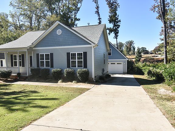 This charming ranch-style home, built in 2019, features three bedrooms and two bathrooms. It includes an oversized, detached two-car garage with an unfinished upstairs space that has plumbing available. Located near Main Street, it offers easy access to shopping, dining, and entertainment for small town city-life! The open floor plan boasts cathedral ceilings, a living room with a fireplace, a covered back deck and front porch for enjoying North Carolina's gorgeous weather. It sits on a private lot with no restrictive covenants for an extra bonus! Schedule a tour today and find your home for the holidays.
