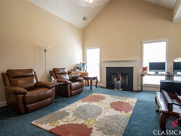 Admire the character and charm of the original hardwood flooring in the entry way and dining room, adding warmth and elegance to the living spaces. Benefit from the recent upgrades including new carpet and vinyl flooring in the kitchen, ensuring a fresh and modern aesthetic throughout the home. Gather around the wood-burning fireplace on chilly evenings, creating a cozy ambiance and adding to the home's inviting atmosphere.