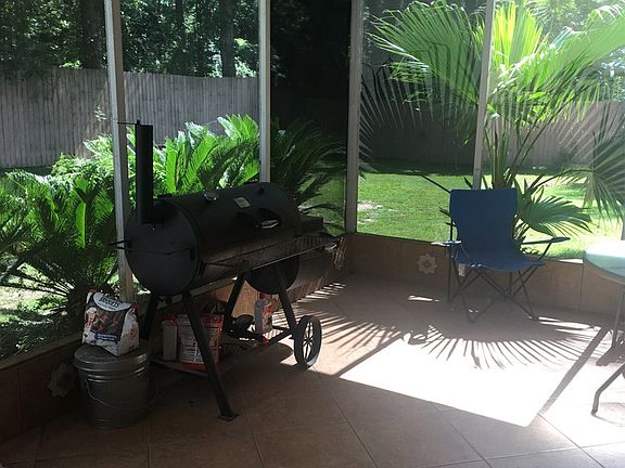 This terrific home single level home is situated in a conveniently located, well established neighborhood just off Ross Clark Circle. A Florida style Bungalow that includes lots of custom tiled areas. The master bath has a large medallion on the back wall along with a wood plank ceiling. The kitchen with its large eat in area also boasts a beautifully tiled floor that also has a medallion! The Living room has the oh so popular, all weather looks like wood vinyl flooring. That along with lots of light and a handsome brick, wood burning fireplace complete with hearth seating again makes this ranch style bungalow unique from others in the neighborhood. As you head out back, the living room opens up to a large screened-in and naturally shaded porch on with gorgeous terracota tile. The porch looks out upon a large, flat and completely private, fenced-in back yard. No house can be built behind you. You have complete privacy and a yard flat enough for the largest dog to run freely! There is an additional metal storage building tucked away, out of sight, in the backyard on the side of the house to store all of your lawn maintenance unmentionables. Speaking of lawn maintenance, because the yard is so flat... doing your own lawn maintenance or hiring a kid down the block is a breeze. Home has a sturdy metal roof (2017) as well as all the old lead windows have been replaced with energy efficient vinyl. The oversized 1.5 car attached garage allows plenty of space to park and still have a work space for a mechanic, an artist, or just extra storage/walk around space. Laundry is off the garage. This is so quietly tucked away and yet within 2 minutes to grocery & other shopping. It's awesome for a small family, anyone downsizing or someone who just wants that florida style bungalow.