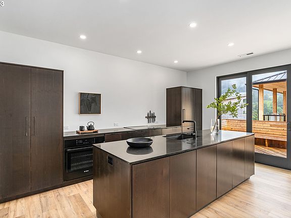 Discover the epitome of coastal living with this exquisite modern home nestled in the neighborhood of Classic Ridge of Manzanita. Boasting an enviable location within a half mile to both beach access & town. Built with modern design in mind, this home stands out among the traditional houses in Manzanita. It's a rare gem that offers the best of contemporary living. Inside, you'll find spacious rooms filled with natural light. The open layout creates a welcoming and comfortable atmosphere. The kitchen features high-quality appliances, Fisher & Paykel refrigerator, 2 Asko dishwashers, Bosch Stovetop & oven. The dining area flows seamlessly into the spacious living room, making it a great place to relax and enjoy quality time. Upstairs, the primary bedroom is a private retreat with views of Neahkahnie Mtn & a peek of the ocean from the covered deck. The attached bathroom is luxurious, with modern fixtures, a soaking tub & a no curb shower. There are two additional bedrooms, designed with comfort and privacy in mind. High-end furnishings available outside of escrow. For more information, request a feature sheet.
