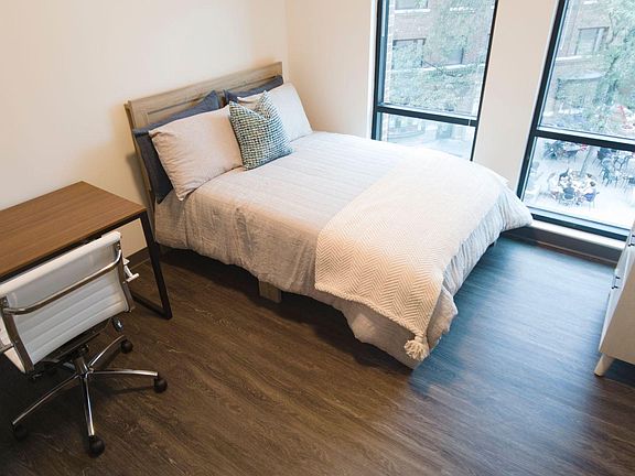 Newly constructed luxury apartments in the most convenient location in Collegetown. Units come fully furnished with beds, mattresses, desks, dressers, couches, chairs, wall mounted TVs and either tables or built-in islands with stools. Kitchen appliances include: electric cooktops, convection microwaves, and full-sized fridges.