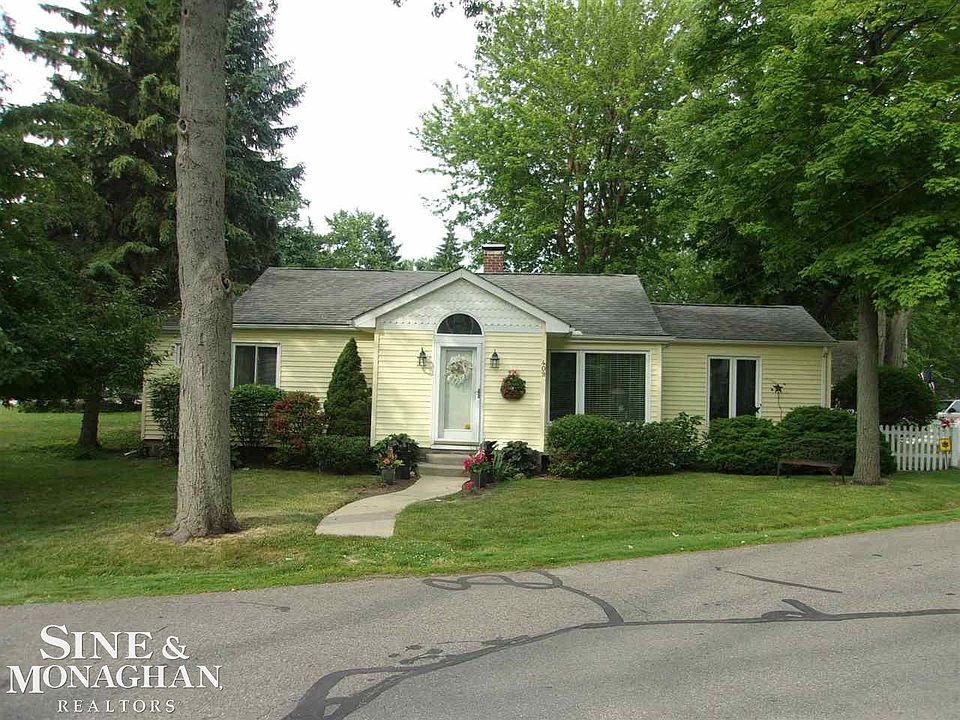 Showcase home in Pointe Du Chene - community's pearl of the delta... area lies at the southern point of Algonac surrounded by St Clair River's North Channel. Updated interior, hardwood floors and gas fireplace for a cozy living room treat opens to kitchen and dining. Master bedroom features high vaulted ceiling and sunrise deck. Den has 3rd bedroom potential and access to deck. Garage hosts addition with a/c as workshop/office. No flood insurance!