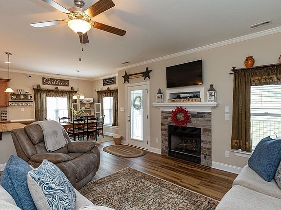 Adorable RANCH floorplan minutes to shopping and Flowers Crossroads. Home has been lovingly maintained and updated in the short time since the home was built. Eat in kitchen has ample cabinetry, granite counters and stainless steel appliances. New interior paint. Luxury vinyl plank flooring in main area as well as master bedroom new in 2022. Master bedroom suite includes a walk in closet, dual vanity, separate shower and garden tub. HUGE walk in storage off the bonus room. Front covered porch, screened porch, deck, fenced yard, children's playset and wired storage building...everything your family could need! Sealed crawlspace with dehumidifier. All appliances and TVs (there are 3!) convey with acceptable offer!