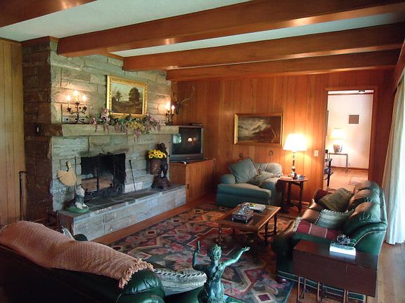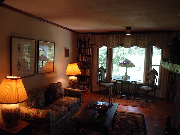 Chat with the golfers! Outstanding golf course view from both of the large, covered porches describes this 4 bedroom home with 4 massive stone fireplaces. Large circle drive with extra parking and a gazebo right at the course.