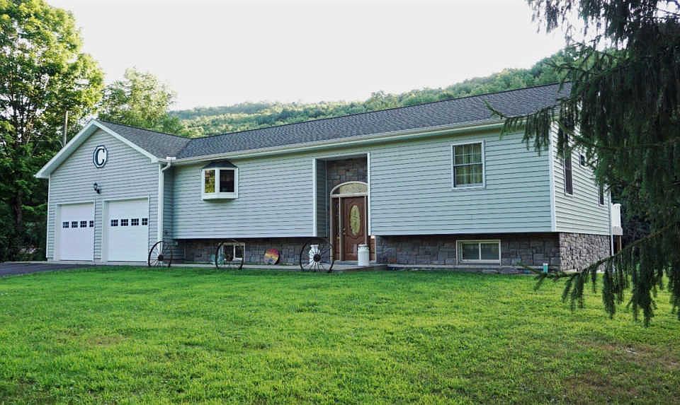 Imagine yourself in this immaculate, contemporary, executive style, raised ranch with split-level living quarters. This well-appointed, custom-built home has been designed with distinction, with attention to detail and functionality. There is access to reliable internet and WIFI service for your work or home-schooling needs. The entire living space of the home has beautiful oak flooring, and the spacious kitchen boasts cherry wood cabinets, recessed lighting and a kitchen island with seating for four. There is also an adjacent dining area for entertaining. The open floor plan means you won't miss out on a moment of fun while preparing or enjoying meals. The tongue-and-groove knotty pine ceiling just adds to the country, comfortable feel of the home. In the spacious lower level, you'll find you can have your office, there's an additional bedroom, a half bath and a beautiful, relaxing hot tub! Who couldn't use that after a hard day of work? The spacious trek deck along the back of the home offers outdoor enjoyment where you can relax and take in the babbling sound of Cold Spring brook nearby. This home is heated with an eco-friendly GeoCOMFORT, compass series, geo-thermal heating system and the Anderson 400 windows throughout do a great job at keeping the summer heat and winter cold outside where they belong. Conveniently attached to the home is your immaculate, temperature controlled two-car garage. This stunning home comes with 7 acres of land and is conveniently located approximately 2.5 hours from the GWB.