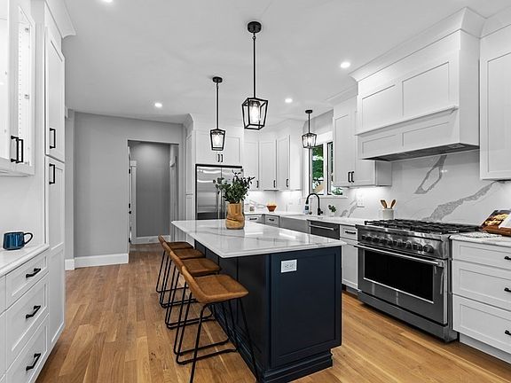 Exceptional newly constructed contemporary Colonial by notable local builder. Located in highly sought after Newtonville this 5 bedroom 4 bath floor plan offers an abundance of space on four finished levels. The functional first floor has a place for everyone and features a chef's kitchen wrapped in custom cabinetry with Calacutta Marcella quartz stone tops and Fisher & Paykel appliances. An oversized family rooms features soaring ceilings and a dramatic fireplace. Formal living and dining rooms showcase coffered ceilings and a generous mudroom and bedroom/office complete the first floor. Second floor features a generous Primary Suite, two bedrooms, full bath and laundry room. The finished third level includes a large bonus room and has pre plumbing to add a future bathroom. The finished lower level offers and additional family/exercise/media room, bedroom and full bath perfectly suited for an Au Pair suite or extended family.