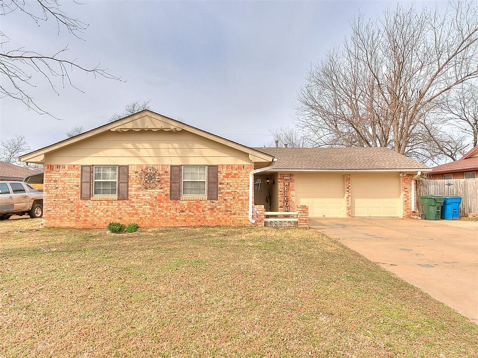 Welcome home. Prepare to fall in love with this charming home which is nestled on a quiet cul-de-sac. The open concept Living/Kitchen is perfect for modern living. The home features three bedrooms, one full bath and one half bath. The attached two car garage is perfect for Oklahoma's unpredictable weather. There is a covered patio to enjoy mornings or evenings and an outbuilding for additional storage. Located conveniently near shopping, dining, theaters, and just minutes from Tinker Air Force Base, this home combines comfort with convenience. It’s perfect for anyone seeking a home in a great location with room to grow or customize. This beauty would make a perfect family home or an excellent rental property as well.