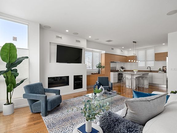 Daylight pours through big windows on all three exposures of this move-in ready end-unit town-home. Choose to enter through your private courtyard or through your private 2-car garage. The patio also features built in pet grass so you can easily let Fido out to do their business. A cozy mudroom and coat closet at ground level offer the perfect place to stash your coats and shoes before heading upstairs. The first floor offers an open layout with a spacious living room, oak hardwood floors, and expansive floor-to-ceiling windows flooding the space with light. It also features a cozy gas fireplace, a functional office nook, and built in surround sound speakers. On the second floor, discover two beautifully appointed bedrooms with spacious closets and a well-appointed shared bathroom with double sinks. The top floor includes a well appointed primary suite with en-suite bathroom and sliding doors leading to a private deck. Welcome home!