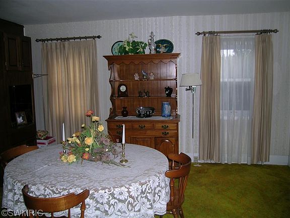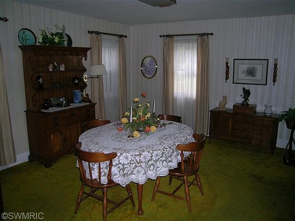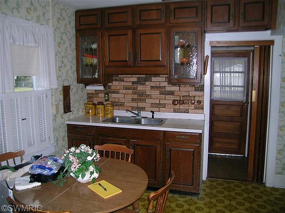 Great opportunity to own this well built 3 BR 1 bath White Pigeon home. Offers main floor formal dining room, spacious living rm with front door to covered porch. step saver kitchen, with laundry area, and master Bedroom. Upper level has two bedrooms. Full basement, updated furnace, water heater. 100 amp service, replacement windows. 30 x 48 4 car detached heated garage with car lift and a 12ft door. fenced rear yard/Hardwood floors are supposed to be under dinig rm and living rm.