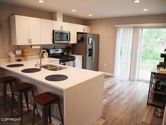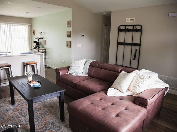 Located within a short distance of your favorite downtown dining, grocery & entertainment options! This cozy downtown Palmer home features 3 bedrooms, 2 bathrooms, contemporary colors, granite countertops, LVP flooring throughout, vaulted ceilings, can lighting, & ample natural light. 1 hr from Anchorage, skiing/hiking at Hatcher Pass & Matanuska Glacier, Musk-ox farm nearby, + more!