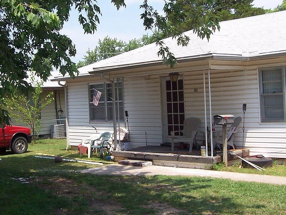 Vinly siding w/newer roof. Large living room, ceramic tile in kitchen with breakfast bar & eating area, featuring french doors. Separate utility. Clean but needs some finishing touches.