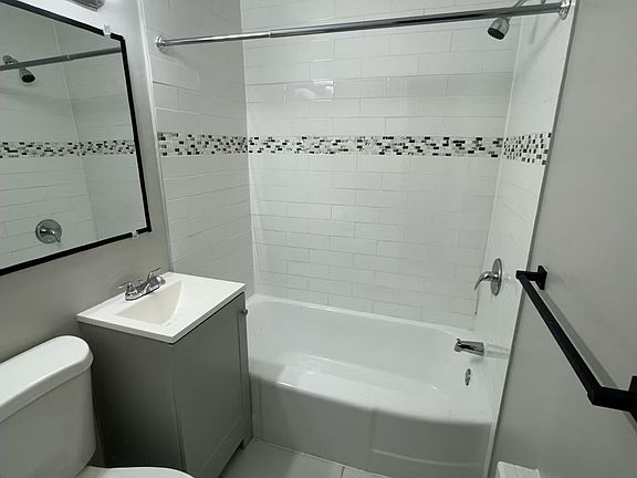 Stone countertopsModern bathroomNew flooringSpacious one bedroom unit