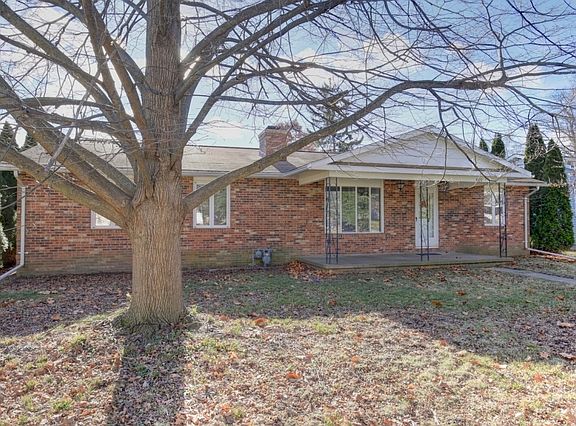 This comfortable one story, with an inviting covered front porch, is conveniently located on a nice lot at the edge of town. Well planned Living room has an attractive fireplace wall as the focal point. Formal Dining room adjoins - great for entertaining. U-shaped Kitchen has newer stove and refrigerator, with the breakfast area overlooking a delightful back yard, planted with several blooming bushes, trees an garden areas. Master Bedroom has two closet areas, plus a private bath. Two additional bedrooms nearby. Hi-efficiency Furnace and A/C were installed in August of 2009. Detached two car garage is extra deep, allowing for additional storage. Good house, well priced, just waiting for new owners and their decorating touches.