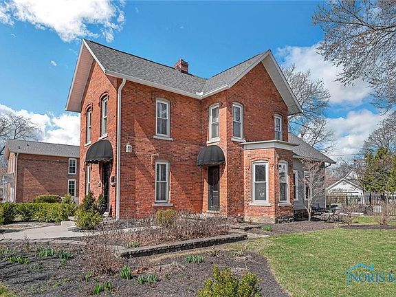 Step into history with this stunning Italianate-inspired brick home, built in 1857 by renowned architect AJ Bickner. Situated in the Uptown Maumee neighborhood, this home blends historic charm with modern conveniences. This 4-bedroom, 2-bathroom residence features a remodeled kitchen with quartz countertops, Kitchen Aid appliances, and a gas fireplace. The original Ponderosa pine floors add character, while the wooden plantation blinds provide a touch of elegance and privacy. The oversized garage and over $150k in updates and improvements.