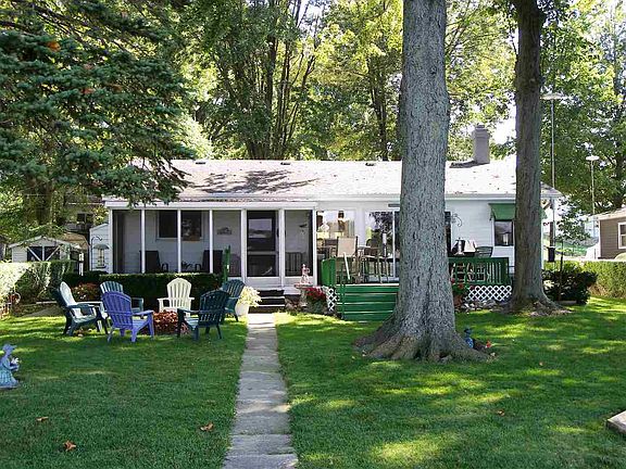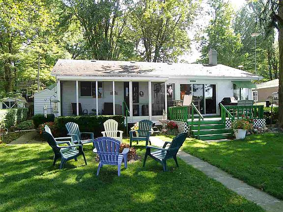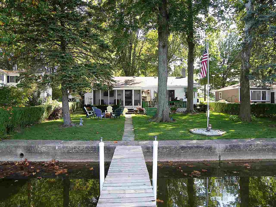 Quick possession available with this charming year around 2 bedroom lakefront home on Ridinger Lake (138 acre 10 mph popular fishing lake). Open living room and dining room lakeside with knotty pine walls, gas log brick fireplace and sliding glass door leading to the lakeside deck with unobstructed lake views. Semi open kitchen with breakfast bar, utility room (previously used as a 3rd BR), lakeside screened porch, level lot with shade trees, wide concrete seawall and a 6 section boat docking pier. Other amenities include: vinyl siding, insulated windows, forced air heat with central AC (heat pump), low utilities ($115 monthly average), modern breaker box, 1000 gallon septic system, ample off-street parking, detached garage, storage shed and a chain link fenced roadside yard for children or pets. Community swimming beach and boat ramp nearby available thru voluntary neighborhood lake association ($40 per year). This is a turnkey lake house and a great way to enjoy relaxing pontoon rides, heartwarming sunsets, memory building bonfires and some of the best fishing in the county all at an affordable price.