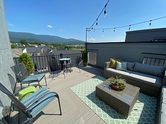 Dramatic Mountain Views, Roof Top Deck with wet bar and luxurious finishes throughout this Dual Primary Suite End Unit Townhome! Incredible home with large gourmet kitchen complete with stunning counters, all stainless appliances including induction range with chimney hood, large stainless farm sink and the best mountain views in Old Trail! Dual Primary large bedrooms each with their own ensuite full bathrooms and large walk in closets. 3rd large bedroom on lowest level with ensuite full bathroom as well! Expansive open concept living with not one, but two decks! Private roof top deck feels like a world away! Large 2 car garage. Solar powered so you don't even have an electric bill! All utilities and HOA included. No Smokers, pet on approval only - requires fee.