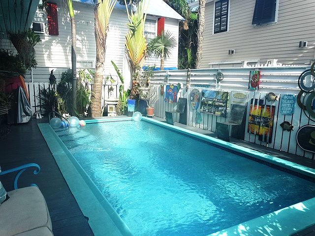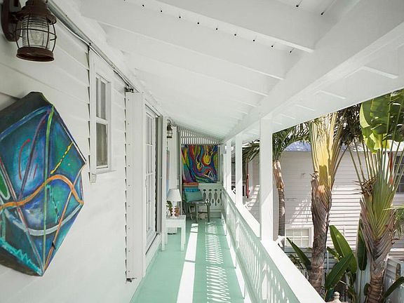The home is located in premier Old Town Key West, only 2 blocks to Seaport district and 6 blocks to Duval St. The home features 3 bedrooms and 2 1/2 baths and an in-ground pool measuring 10 x 22. The balcony over looks the large pool with water feature, patio, pool deck, it's a great area to escape to read or just people watch. The wall of sliding glass doors in living room and dining area giving access to the pool area and provides lots of natural light. Master bedroom and front guestroom feature vaulted wood ceilings and beams.