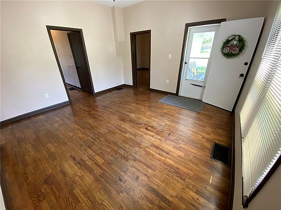 Charming farm house style home on large corner lot. Covered front porch shaded by mature trees makes coffee in the morning very enjoyable. Bright kitchen eating area. Living room and bedrooms have wood floors. Kitchen has plenty of solid wood cabinets and counter space. Lots of old time charm. Full walkout basement for tons of storage. Interior and exterior just professionally painted. Detached 24x17 garage and plenty of driveway parking. Owner/Agent