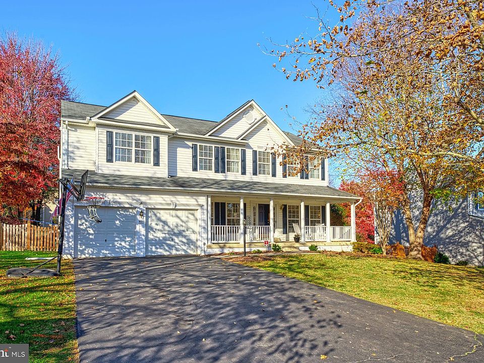 Hirst Farm beauty w/ Covered Front Porch and Prime Lot situated at the back of a Cul-De-Sac in one of the greatest small towns in America; Purcellville, VA! Absolutely gorgeous, move in ready home! Excellent curb appeal! Brand new tiered trex deck with dual staircases and custom patio built in 2021! Playset conveys! As soon as you walk through the threshold of this impressive home you will be greeted by both charm and grandeur with soaring cathedrel ceilings in the breathtaking family room, and an inviting gas fireplace w/mantle gracing the heart of this elegant home. "Chef's Dream" kitchen is well equipped, overlooks the family room, and features a massive open granite island with long breakfast bar, immense storage, beautiful maple cabinetry, huge walk in pantry, convenient kitchen desk with cabinet storage above, granite counters, and stainless steel appliances! Spacious and private office on main level with high speed internet for all your work from home needs!. Formal living room currently being used as playroom. Separate formal dining room with beautiful trimwork, chair railing, and crown molding. Upstairs you will find an impressive and grand primary suite with vaulted ceilings, sitting area, huge walk in closet, primary bathroom with large corner soaking tub, separate stand up shower, and double sinks. Large hall bathroom boasts double sinks. 3 upstairs secondary bedrooms each with a beautiful walk in closet and plenty of space and style. Massive walkup basement with light and bright recreation room, rough in for full bathroom, and 2 gigantic unfinished storage areas. HVAC 2017. Water Heater 2021. LVP - luxury vinyl plank flooring throughout entire main level 2021. New lighting throughout 2021. Minutes to churches, schools, dining, shopping, parks, and commuter routes. 20 min to Dulles International Airport.