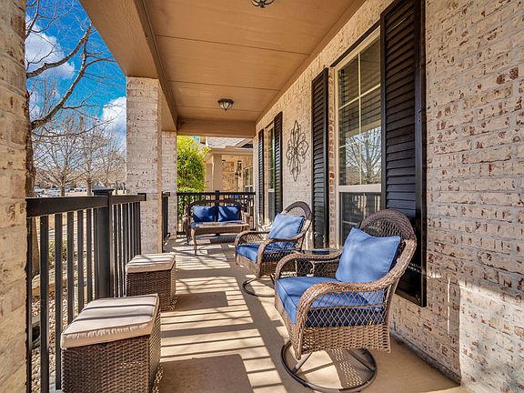 Gorgeous gas fireplaceCovered balconyPrivate balcony accessTwo-story brick homeTwo primary suitesCovered patioKitchen features granite countertops