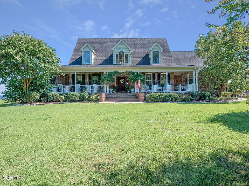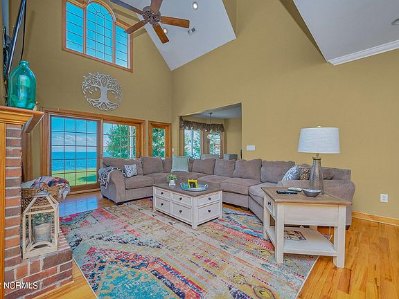 BACK ON THE MARKET at no fault of the Sellers. Beautiful 2 owner brick home on the Albemarle Sound. Enjoy outdoor living on the large front and back porches, relaxing by the firepit in the backyard or on the boat dock! Home features wood floors, downstairs master, whole house generator, high ceilings, 2 small storage buildings to house all your outdoor toys, and much more. There is a half bath located in the garage and a large FROG. Come check out this waterfront dream today!