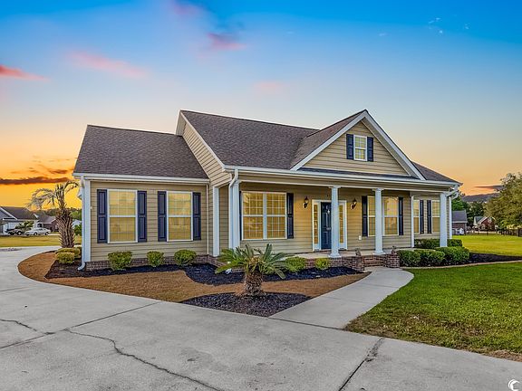 This charming low country style home, nestled in the sought-after Keighley Estates community, offers a perfect blend of comfort and space with 4 bedrooms and 2.5 baths. Upon entering, you'll be greeted by the warm ambiance of wood flooring in the living room, dining area, and kitchen, complemented by recent upgrades like new bedroom carpeting and fresh paint, giving it a contemporary and well-maintained feel. The spacious master bedroom is a haven with a tray ceiling, two roomy closets, and a luxurious en-suite bath, complete with a soaking tub and walk-in shower. Three generously sized guest bedrooms on the first floor, along with a versatile bonus room over the garage, add to the flexibility of the layout. Outdoor living is encouraged with two inviting porches, and the side-load 2-car garage and extended driveway provide ample parking. Conveniently located in Anyor near HWY 22, this home is a short drive from downtown Conway, ensuring easy access to essential amenities and entertainment. Don't miss the opportunity to make this exquisite low country style home your own and schedule a showing today to experience the perfect blend of style and comfort in this desirable community.