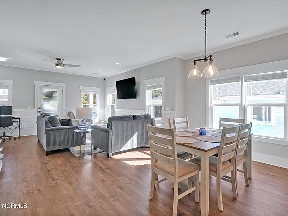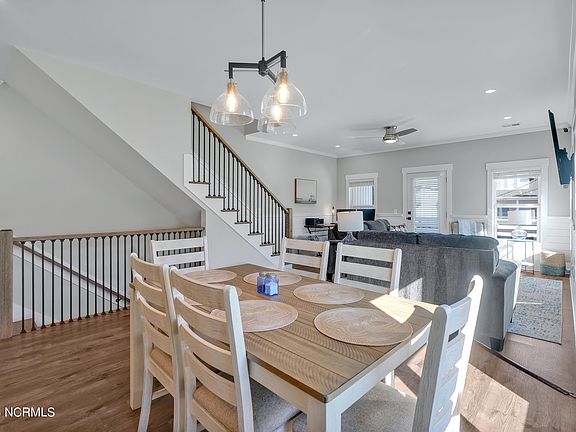 Discover this meticulously furnished and turnkey 3-bedroom, 3-bathroom townhome in the heart of Carolina Beach, where you'll find luxurious LVP flooring throughout the entire home. This property offers an excellent location just a short walk to the beach, shopping, and popular island restaurants. The kitchen features a large quartz island and stainless steel appliances, adding both style and functionality to the heart of the home. Shiplap accents on the first floor infuse a touch of coastal charm. The large master bedroom boasts a beautiful en suite with a gorgeously tiled shower adding a touch of luxury to your living experience. Enjoy the refreshing ocean breeze on the decks, further enhancing the charming coastal appeal. With a fully fenced yard for your beloved fur babies, an outdoor shower, and plenty of storage under the home, along with an additional shed perfect for golf cart parking and beach toys, everything is organized and ready. This property provides both comfort and practicality, making it a wonderful place to live and a smart investment opportunity. Consider the option to own both sides, allowing you to live in one side and rent out the other, taking advantage of the high demand for vacation rentals in this area. Don't miss the chance to own this fully furnished and turnkey slice of paradise in Carolina Beach—schedule your showing today!
