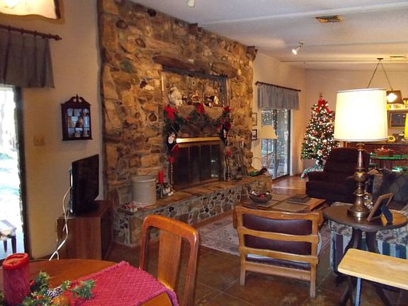 GREAT BUY per sq. ft., acreage and location!! Needs TLC, handymans's dream. Ranch-style, rock, home on 2 acs. Beautiful, rock, fireplace, matches exterior rock. Split-bedroom arrangement, 2 full baths, stained, concrete,flooring. Living room & dining room combo. Breakfast nook, compact, kitchen with built-ins and refrigerator. Two A/C units. Separate utility room. 2 car carport. Two sliding doors(off living room) with great view of backyard & lg. trees. Det.Storage bldg. Has private well and septic. City Water is available. Front yard has large trees. Two(2) acs.(MOL) for horses, garden,4-H, room for vehicles etc. All this, plus near Wal-Mart, shopping center, college and restaurants. Look for Pat Haby sign, call to see this one of a kind, for this one of a price, home & 2 acs!!