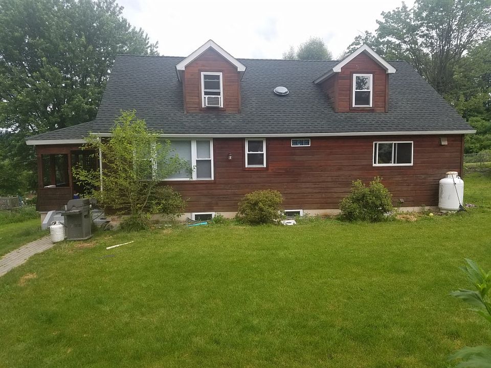 This cozy place has a lot of wood finish, all new windows, roof, kitchen, bath and interior finish. The half acre lot has an extra water, sewer, electric service available for a second dwelling if desired. All of the plumbing and electrical systems have been replaced and a second bathroom has been framed and plumbed in the basement. There is a brand new central air conditioner, just installed, as well as a new hot water heater. Heat with either wood or oil, or even heat with both. The large yard has an irrigated garden with raised beds. The wood siding is cut from local pine trees and the interior wood trim is also from locally harvested hardwoods. The large eat-in kitchen features a gas stove, maple cabinets and lots of storage. The location is halfway between Altoona and State College and is an easy commute on I-99. Seller is a licensed PA Real Estate Agent.