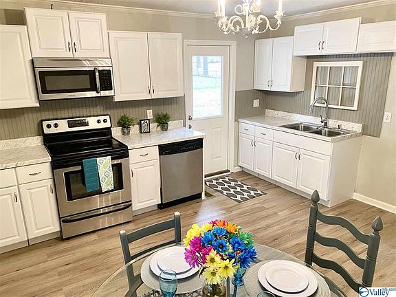 Completely updated home located on a large corner lot in the Hartselle school district. Beautiful refinished hardwood floors, new paint, remodeled kitchen with new counter tops, cabinets , waterproof vinyl plank flooring and stove. Gorgeous guest bathroom with a soaker tub. New roof, breaker box and vinyl windows. Detached workshop with power. Everything you are looking for and priced to sell. Call today for a private showing, but hurry because this one will not last long!